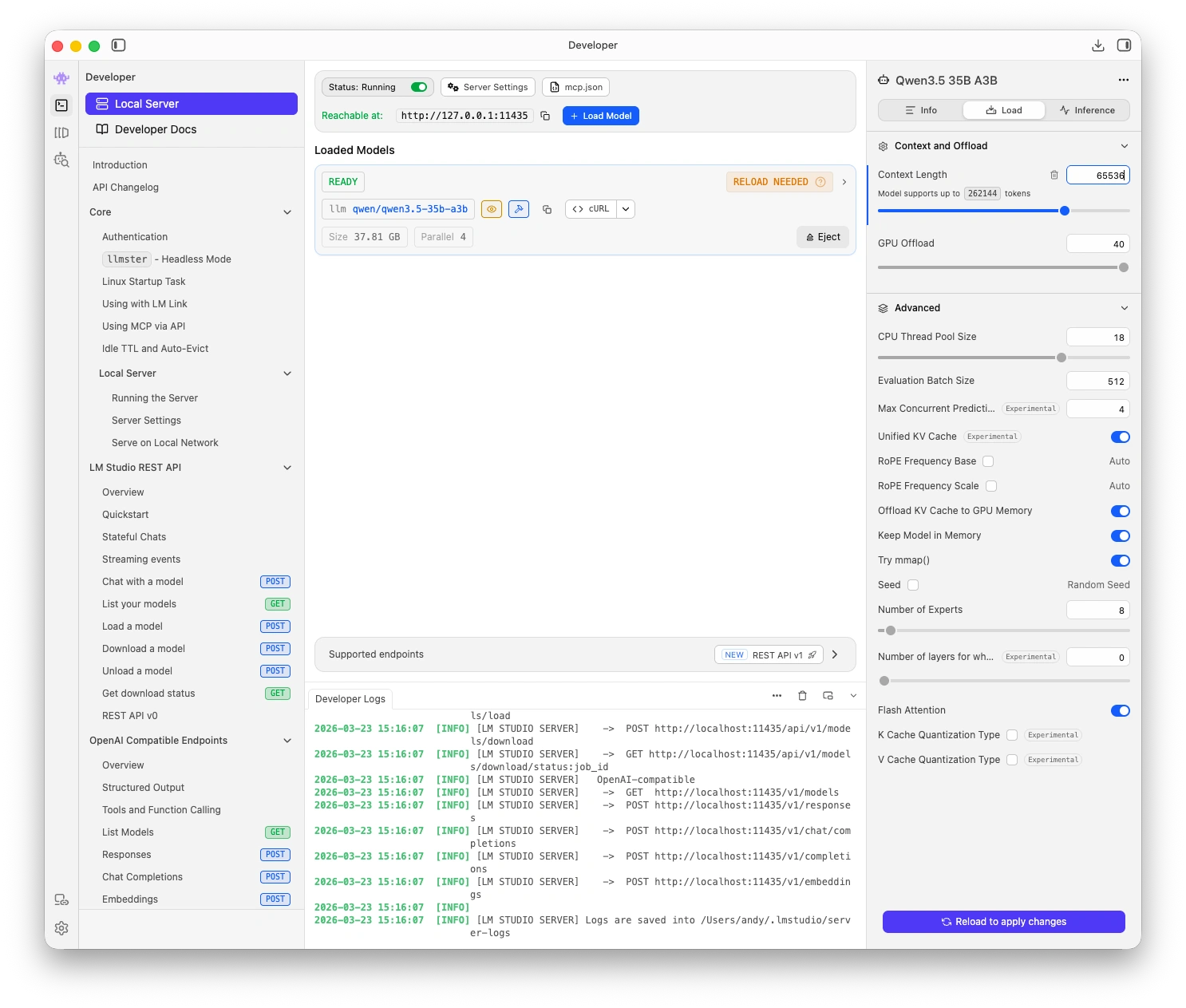 | 64 GB+ | Qwen3.5 35B A3B (Q8_0) | Best quality, MoE architecture keeps active parameters low |
