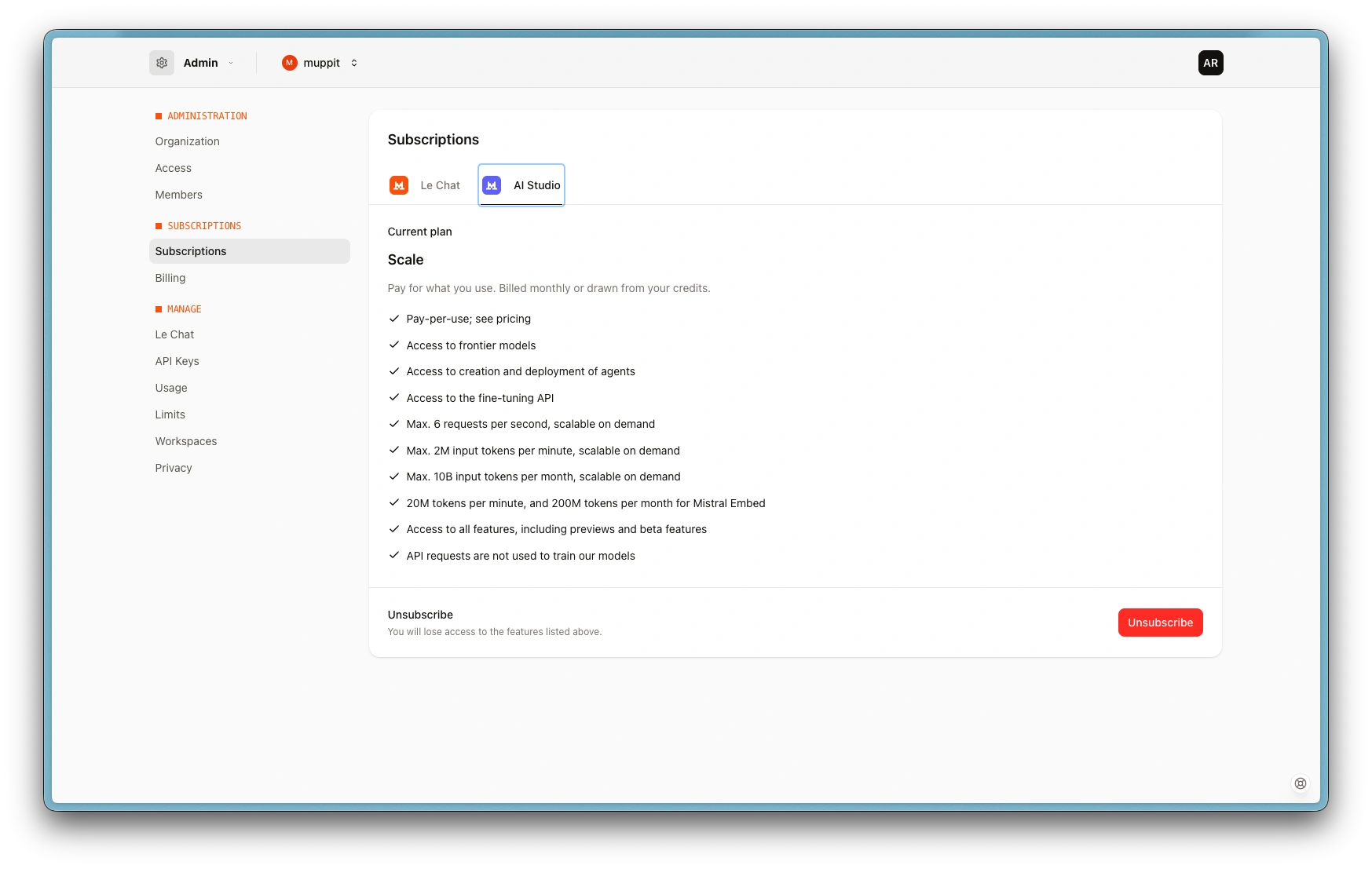 - Go to console.mistral.ai