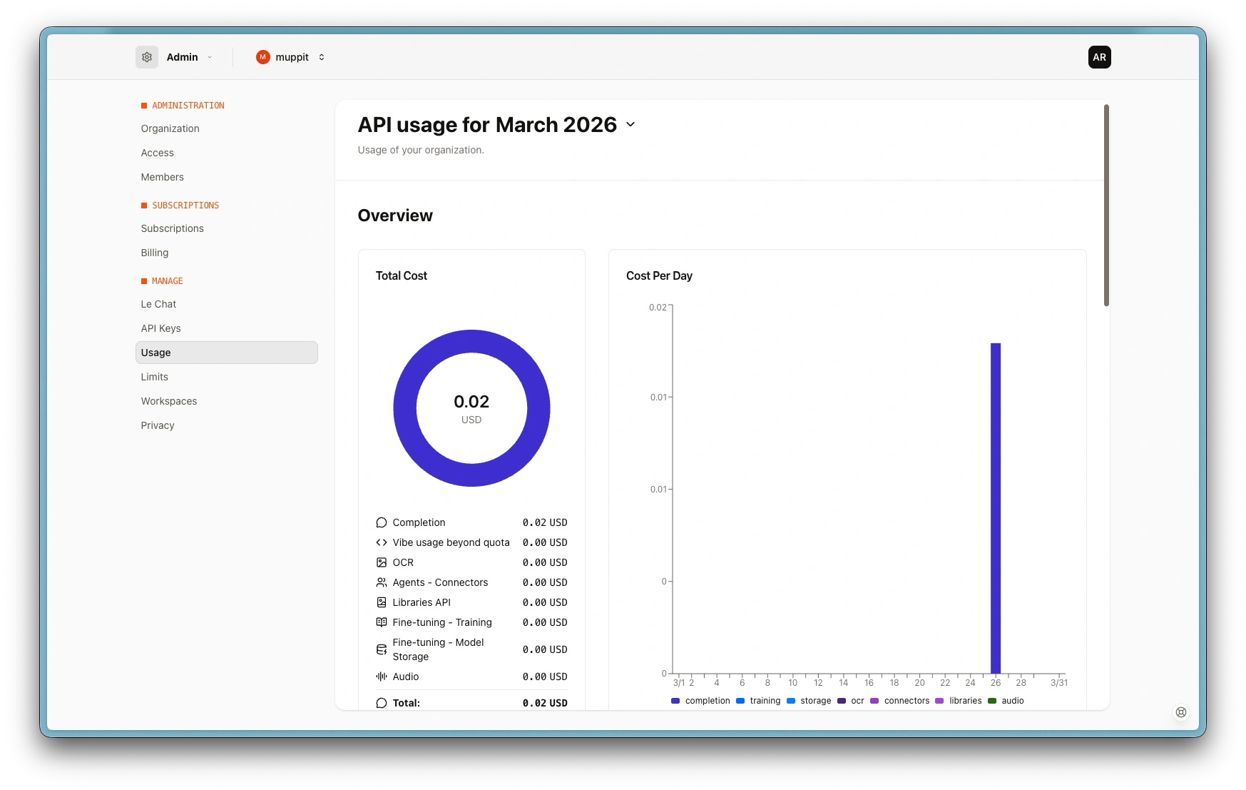 Mistral API access requires a payment method. You are only charged for what you use.