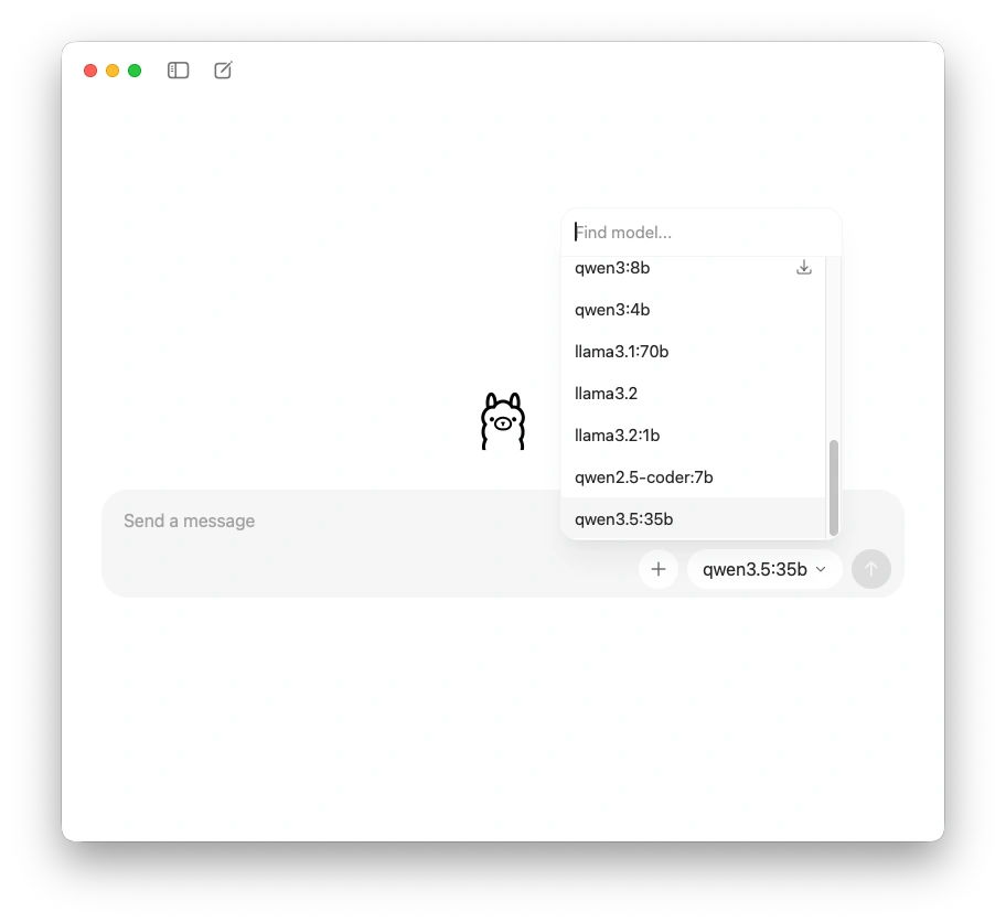 No terminal, no command line. Just pick a model from the list and start chatting.