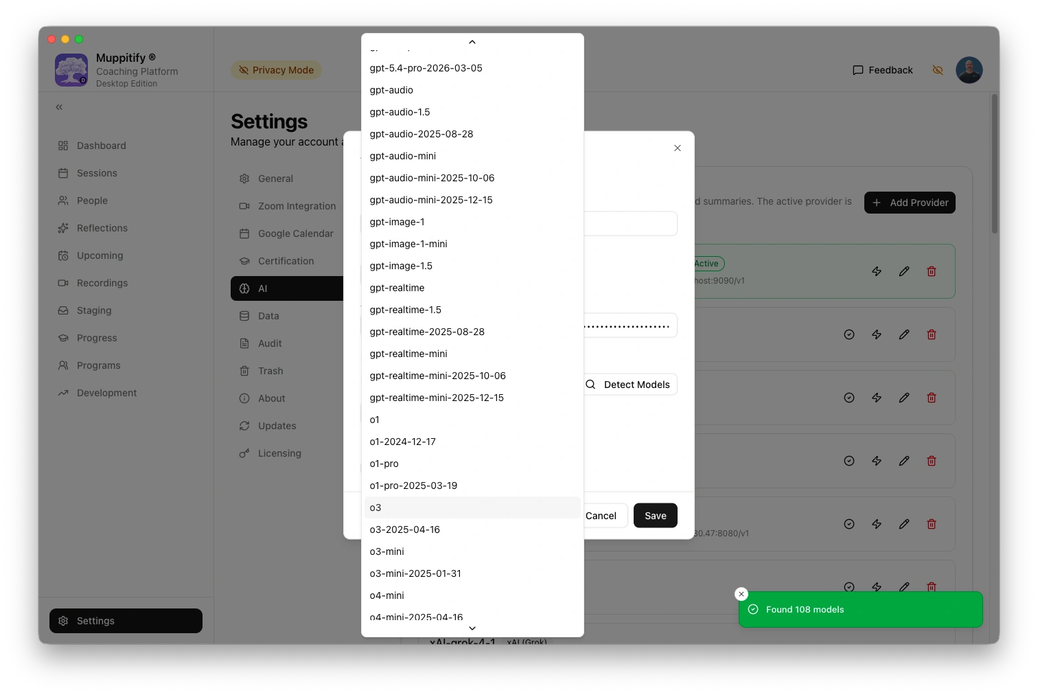 - Open the coaching platform and go to Settings > AI