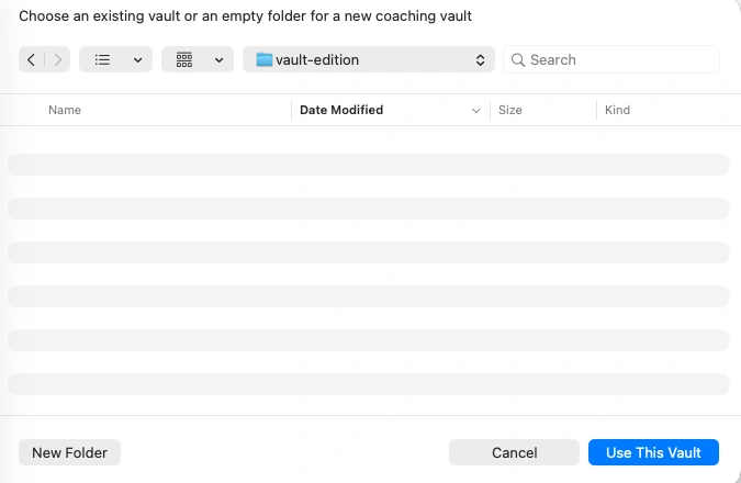 | New dedicated vault | Coaches who want a clean vault just for coaching | ~/Documents/CoachingVault/ |