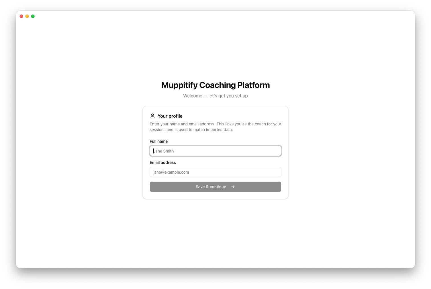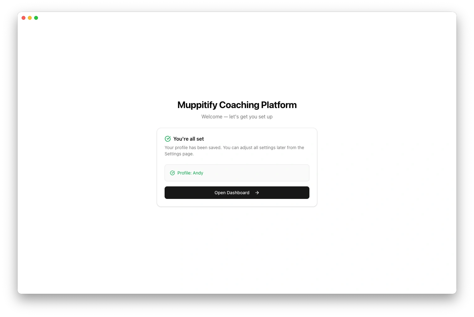 ~/Library/Application Support/MuppitifyCoachVault/(app config only, not your vault) - Your vault folder and all coaching data remain untouched