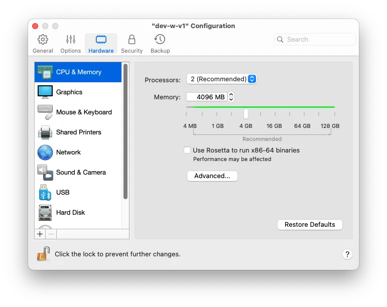 - Hardware. CPU & Memory: 2 Processors with 2048MB memory